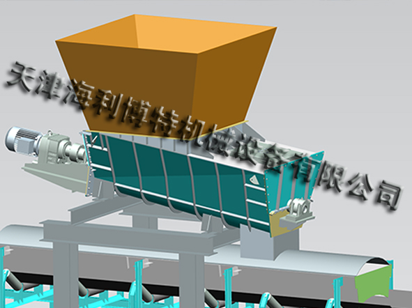 容积式给料机驱动装置的电机减速机驱动螺旋叶片旋转,物料从壳体的入料口落入设备工作腔,螺旋叶片旋转将物料均匀向前推移至出料口处,出料口的物料均匀对中的落入下级输送设备。物料自身重量和设备机壳对物料的摩擦阻力使物料不与螺旋叶片一起旋转。